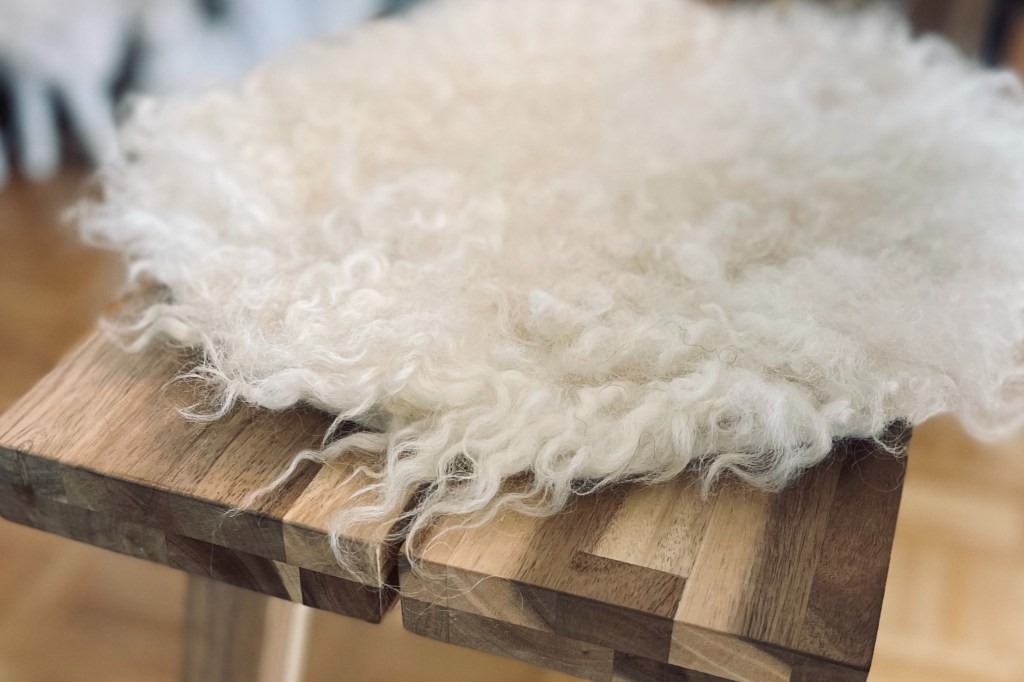 Die Felle stammen von unseren eigenen Lämmern und Schafen. Wir haben unterschiedliche Farben: weiss, braun oder gescheckt. Es ist ein Naturprodukt und damit so unterschiedlich wie die Schafe eben auch. Es gibt Farbnuancen und Grössenunterschiede, welliges oder strähniges Fell.
