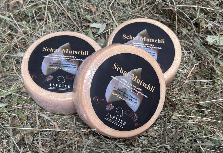 Unsere Schafmädchen verbringen das ganze Jahr auf 1’300 m ü. M. oder höher und ernähren sich dort von bestem Heu, würzigen Gräsern und vielfältigen Alpenpflanzen. Aus ihrer Milch entsteht unser feines Mutschli – ein Käse, der zu jedem Frühstück, Abendessen oder Apéro-Plättli passt und sich auch hervorragend als milder, cremiger Raclettekäse eignet.